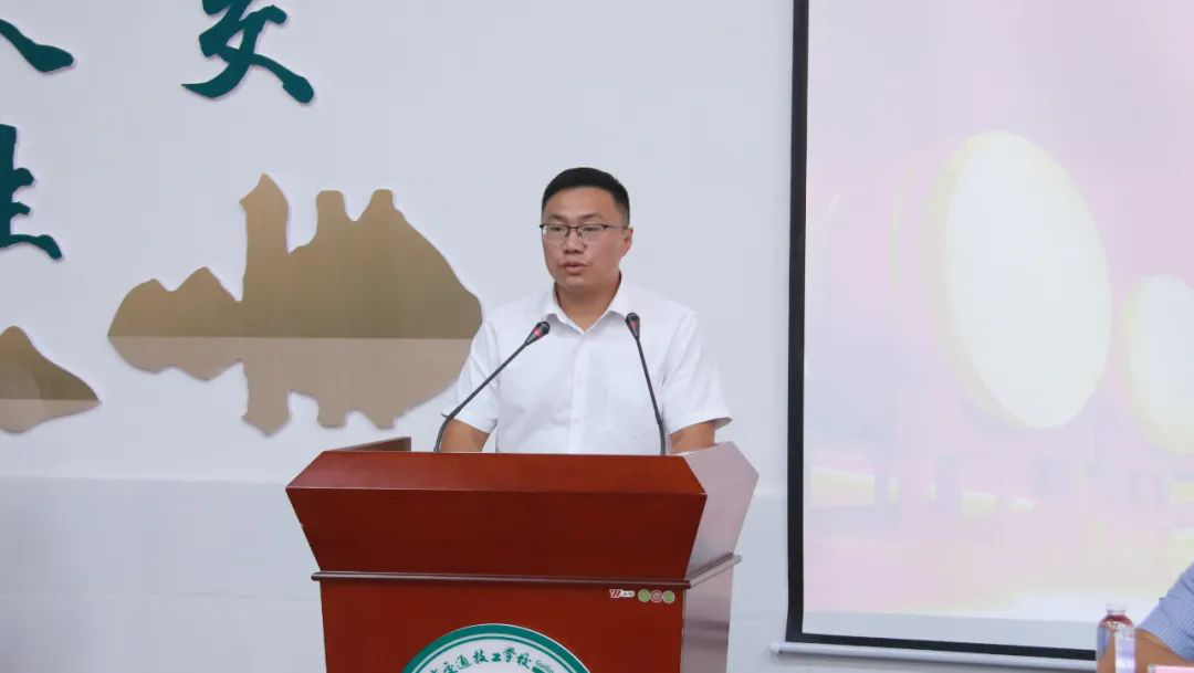 桂林市交通技工學(xué)校黨支部書記潘奇軍宣讀獲獎(jiǎng)名單