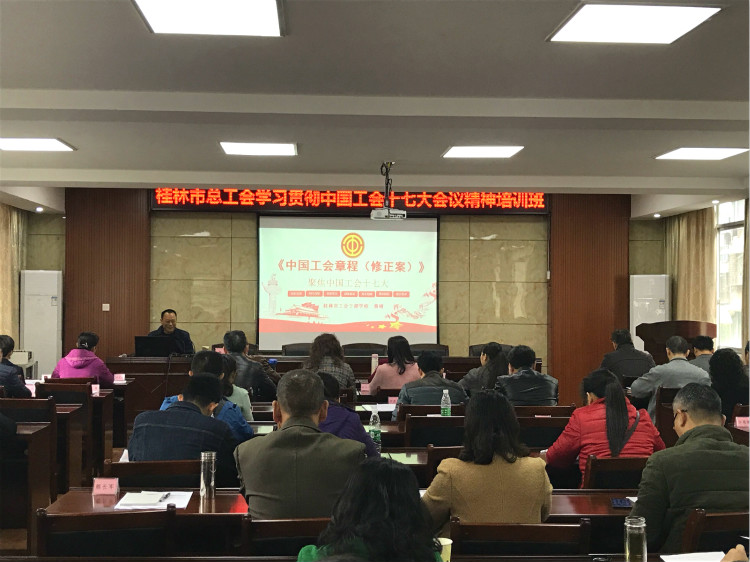 為深入學(xué)習(xí)宣傳貫徹中國(guó)工會(huì)十七大會(huì)議精神,把習(xí)近平總書(shū)記重要講話(huà)和工會(huì)十七大會(huì)議精神全面、深入、準(zhǔn)確地傳達(dá)給基層工會(huì)干部和職工,市總工會(huì)于2018年11月15日在我校舉行了為期一天的工會(huì)干部培訓(xùn)班。十一縣六城區(qū)(總)工會(huì)領(lǐng)導(dǎo)(含鄉(xiāng)鎮(zhèn)、街道工會(huì)領(lǐng)導(dǎo)),部分市總直管基層工會(huì)領(lǐng)導(dǎo)以及桂林市職工大學(xué)全體教職工共計(jì)90人參加了本次培訓(xùn)。