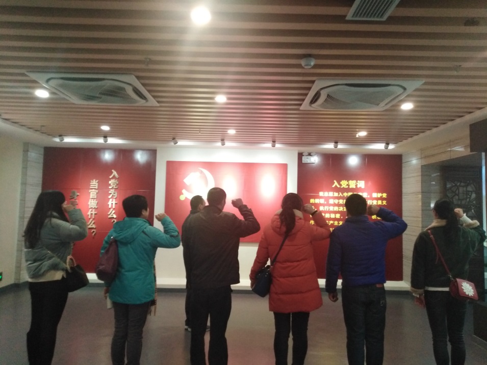 聆聽(tīng)講解,觀看圖文展示、實(shí)例資料、影像資料,黨員和教職工進(jìn)一步深入地學(xué)習(xí)了黨和國(guó)家領(lǐng)導(dǎo)人的治國(guó)理政思想,陳宏謀、周渭等桂林古代清官廉潔理政,紅色革命先輩的大無(wú)畏奉獻(xiàn)精神以及焦裕祿、楊善洲等時(shí)代楷模人物的先進(jìn)事例,同時(shí)現(xiàn)場(chǎng)展示的腐敗分子的服刑視頻、懺悔書等材料更讓大家為之警醒,提高了黨員和教職工對(duì)全面從嚴(yán)治黨重要性、緊迫性的認(rèn)識(shí),始終保持永遠(yuǎn)在路上的斗志,積極傳播正能量,以優(yōu)良黨風(fēng)帶動(dòng)教風(fēng)學(xué)風(fēng),營(yíng)造良好政治生態(tài)環(huán)境,堅(jiān)定不移推動(dòng)全面從嚴(yán)治黨向縱深發(fā)展。不忘初心,牢記使命,在鮮紅的黨旗下,黨員干部莊嚴(yán)宣誓,重溫入黨誓詞。