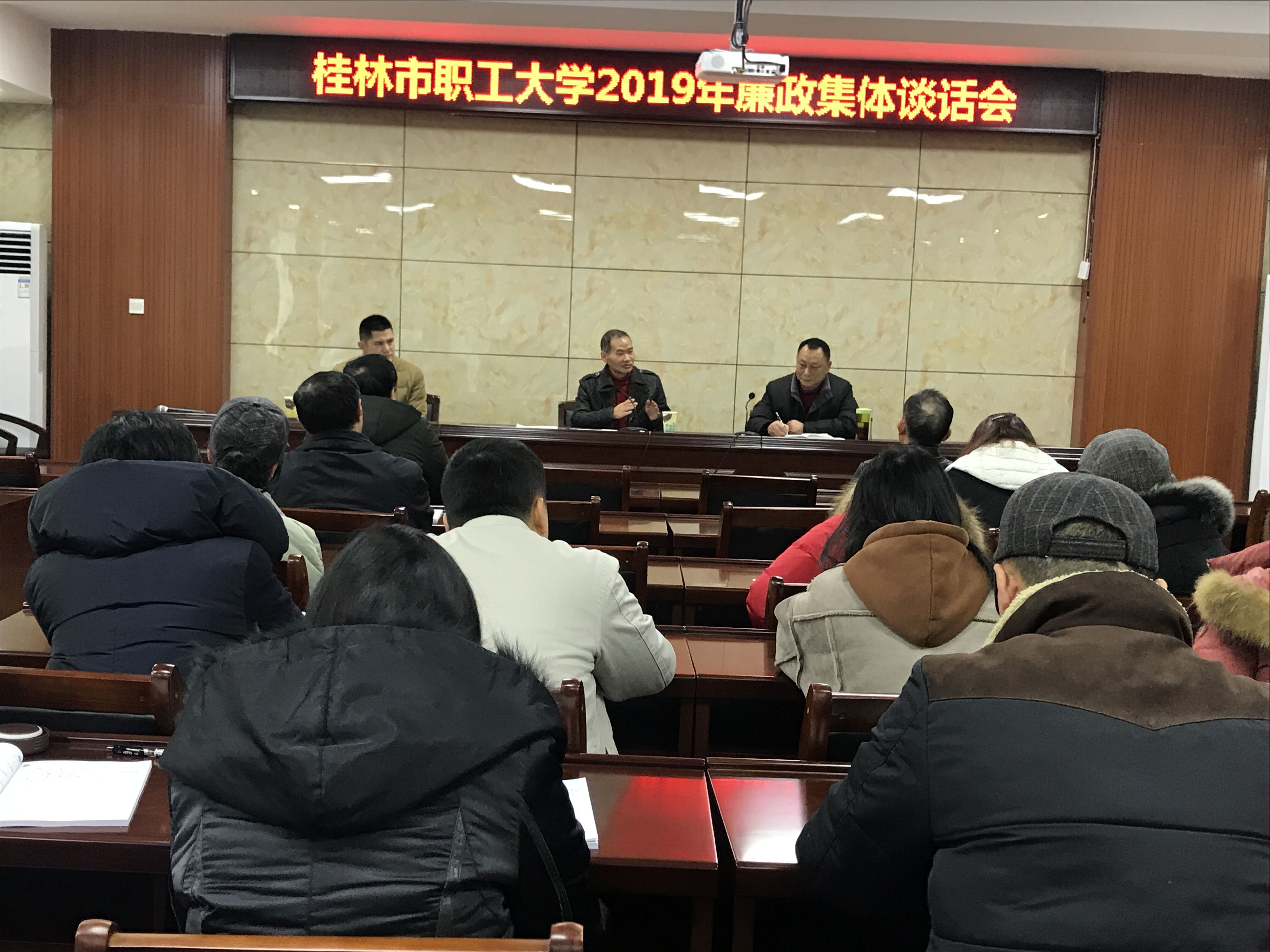 為深入學(xué)習(xí)貫徹黨的十九大精神特別是習(xí)近平新時代中國特色社會主義思想,全面落實(shí)從嚴(yán)治黨的決策部署與“兩個責(zé)任”,踐行“四種形態(tài)”,進(jìn)一步推進(jìn)全校黨風(fēng)廉政建設(shè),提高黨員干部廉潔自律意識,1月8日下午,我校在131會議室召開集體廉政談話會,校領(lǐng)導(dǎo)班子成員、部門中層正副職以及全體黨員參加會議。