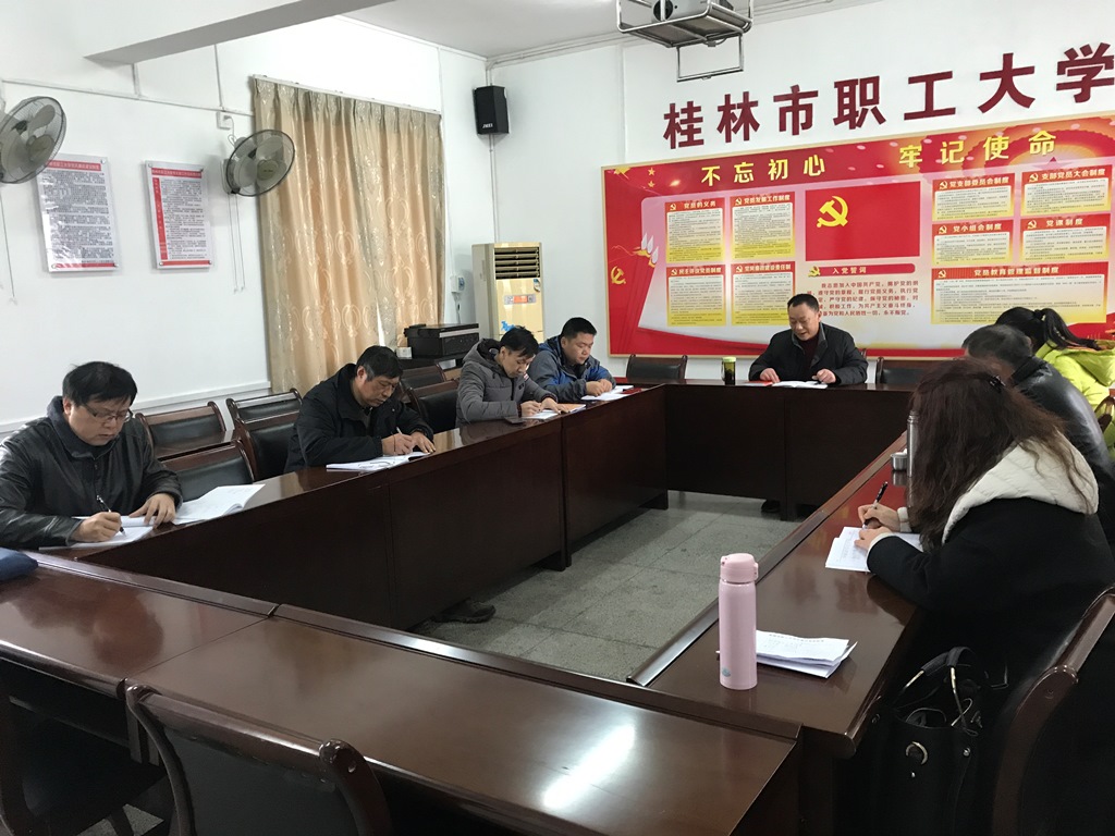 為深入學(xué)習(xí)領(lǐng)會習(xí)近平總書記為廣西成立60周年重要題詞“建設(shè)壯美廣西,共圓復(fù)興夢想”的精神,深入貫徹習(xí)近平新時代中國特色社會主義思想和黨的十九大精神,也為開好2018年民主生活會打牢思想基礎(chǔ)。2019年1月15日下午,桂林市職工大學(xué)支部委員會中心學(xué)習(xí)組召開了專題學(xué)習(xí)會,以中心學(xué)習(xí)發(fā)言和交流發(fā)言的形式,與會班子成員和支委暢談思想感悟和學(xué)習(xí)體會。
