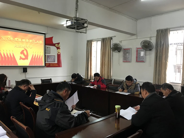 1月23日上午,桂林市職工大學(xué)召開2018年度民主生活會(huì),會(huì)議由職工大學(xué)校長、書記詹靖主持,學(xué)校班子成員及支部委員參加了會(huì)議。桂林市總工會(huì)副主席葉雪剛同志到會(huì)指導(dǎo)。