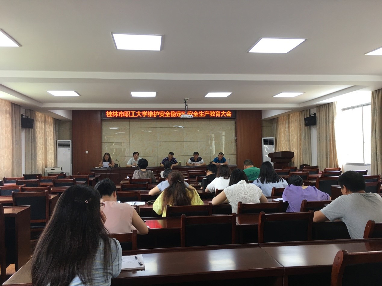 2019年6月4日上午,桂林市職工大學(xué)召開維護(hù)安全穩(wěn)定暨安全生產(chǎn)教育大會,全校教職員工參加了會議。