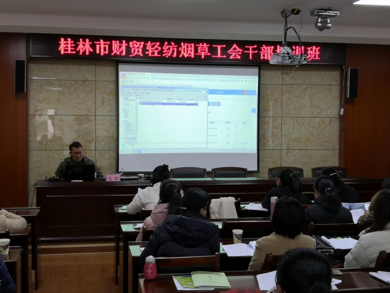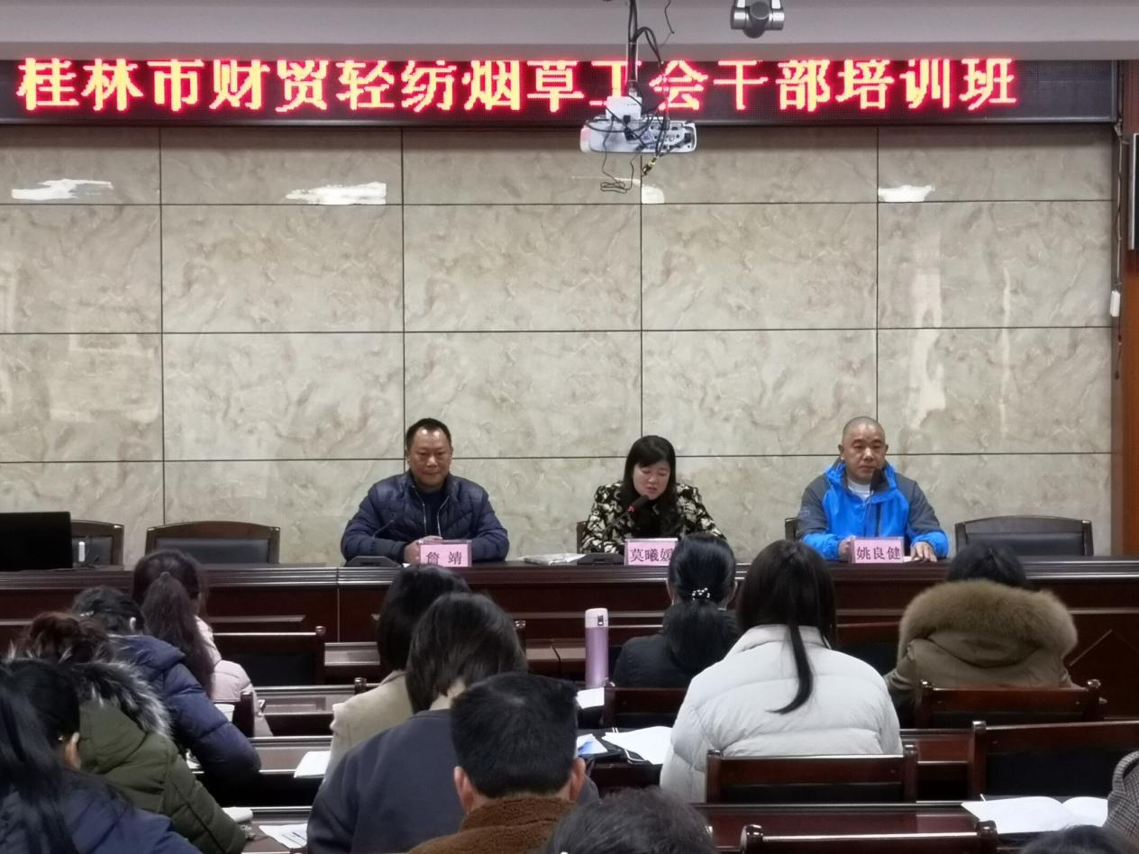 12月4日,由桂林市總工會財貿(mào)輕紡煙草工會主辦,桂林市工會干部學(xué)校(桂林市職工大學(xué))承辦的桂林市財貿(mào)輕紡煙草工會干部培訓(xùn)班在我校召開。