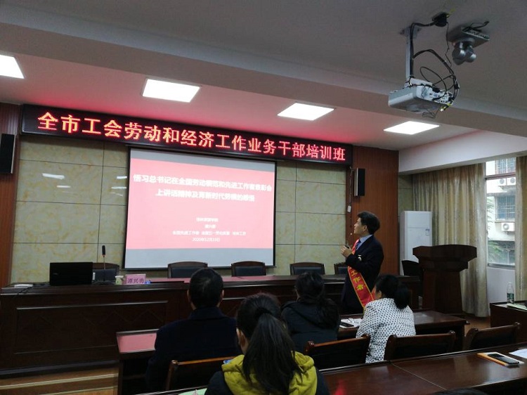 為深入貫徹落實習(xí)近平總書記系列重要講話,培育和踐行社會主義核心價值觀,大力弘揚(yáng)勞模精神和工匠精神,唱響“勞動光榮、創(chuàng)造偉大”的時代主旋律,12月10日學(xué)校特邀榮獲2020年全國勞模光榮稱號的桂林旅游學(xué)院烹飪高教技師譚興勇到校為全體教職工及全市工會勞動和經(jīng)濟(jì)工作業(yè)務(wù)干部培訓(xùn)班學(xué)員做了一場題為《悟習(xí)總書記在全國勞動模范和先進(jìn)工作者表彰會上講話精神及育新時代勞模的感悟》的講座。