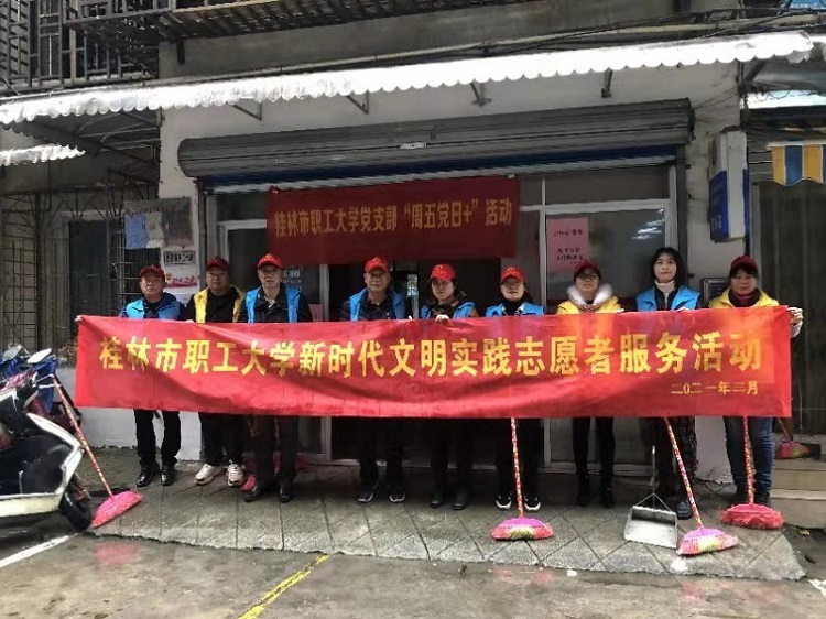 為傳承雷鋒精神,增強(qiáng)廣大教職工奉獻(xiàn)服務(wù)意識(shí),豐富新時(shí)代文明實(shí)踐志愿服務(wù)活動(dòng)載體,結(jié)合桂林市常態(tài)化創(chuàng)建全國(guó)文明城市要求,3月5日,桂林市職工大學(xué)黨員志愿服務(wù)隊(duì)到象山區(qū)東安社區(qū)開(kāi)展新時(shí)代文明實(shí)踐志愿服務(wù)活動(dòng)。