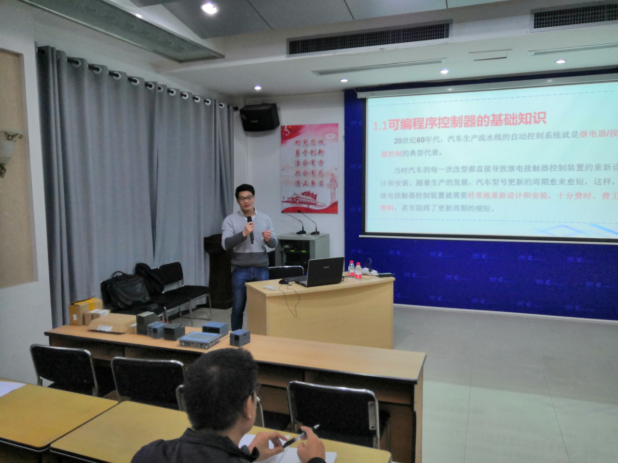 本期培訓(xùn)的項(xiàng)目是PLC控制器應(yīng)用。我校委派機(jī)械電子工程專業(yè)工程師張勇老師,就PLC的組成及基本結(jié)構(gòu)、PLC指令、PLC程序編寫等課題與長海的職工熱烈探討,就職工工作生產(chǎn)中遇到的實(shí)際問題積極互動,深入交流,取得了良好的反響。