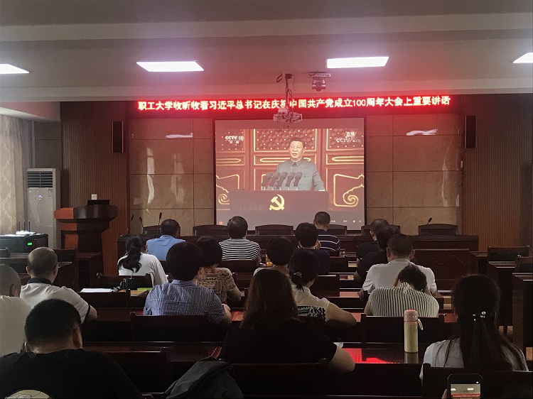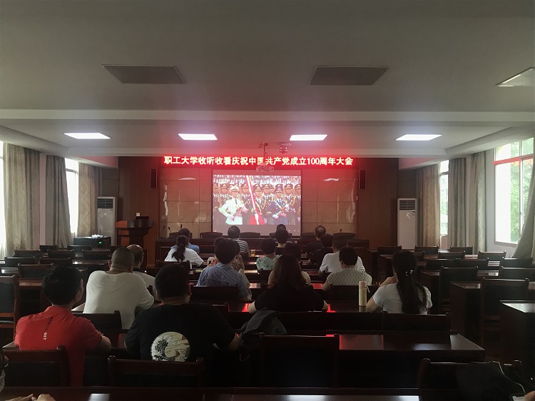 7月1日上午,中共中央在北京天安門廣場(chǎng)舉辦慶祝中國共產(chǎn)黨成立100周年大會(huì),習(xí)近平總書記在會(huì)上作重要講話。桂林市職工大學(xué)組織全體黨員干部、教職工在131會(huì)議室收聽收看大會(huì)盛況。