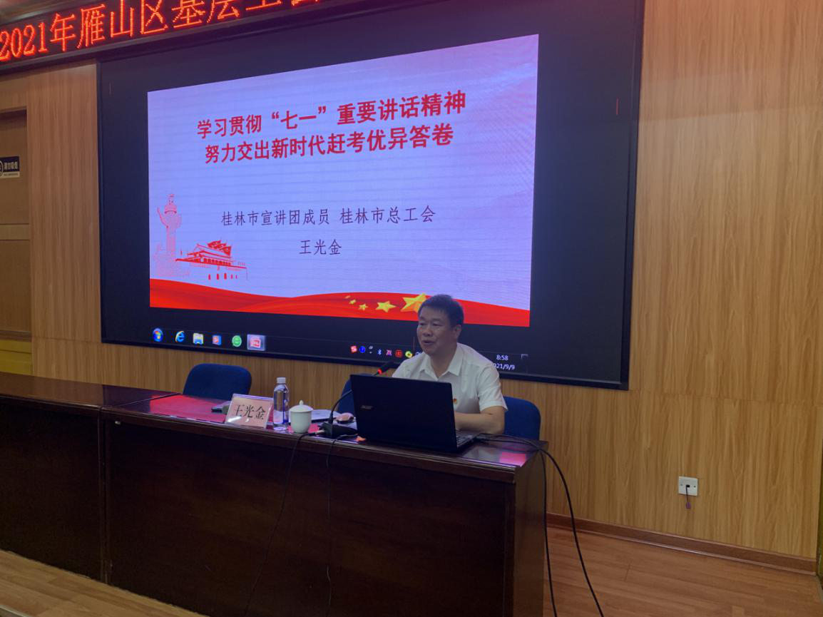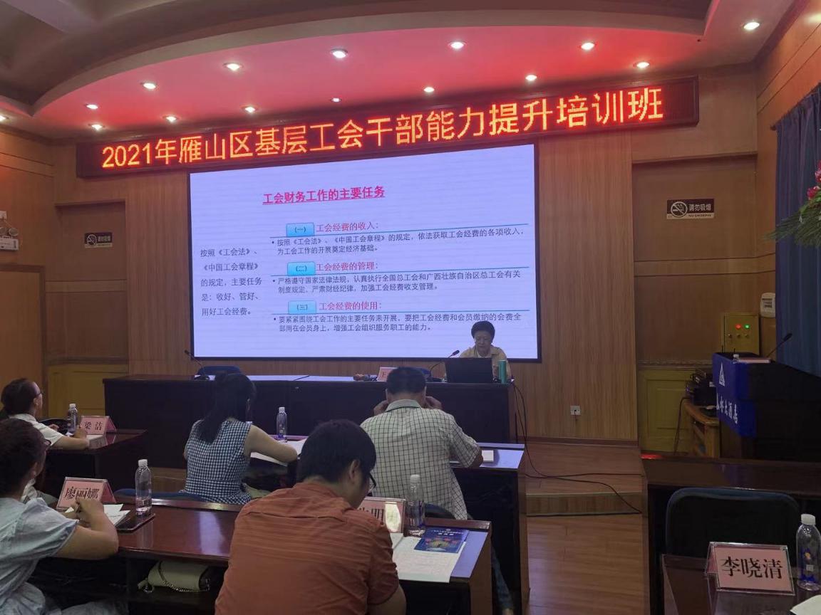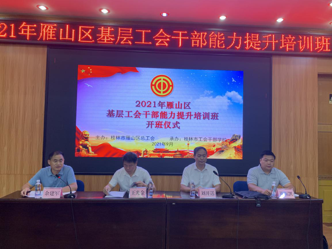 2021年9月9日,雁山區(qū)基層工會(huì)干部能力提升培訓(xùn)班在桂林山水大酒店順利開班。本次培訓(xùn)歷時(shí)兩天,由雁山區(qū)總工會(huì)主辦,桂林市工會(huì)干部培訓(xùn)學(xué)校承辦。