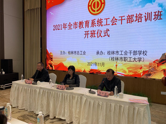 11月18日下午,桂林市總工會主辦、桂林市工會干部學校(桂林市職工大學)承辦的2021年全市教育系統(tǒng)工會干部培訓班在全州順利開班。桂林市總黨組成員、副主席莫曦媛,桂林市職工大學(桂林市工會干部學校)副校長周開源出席開班儀式并講話,市教育工會常務(wù)副主席陳東主持開班儀式。共有來自全市11縣(市)6城區(qū)各基層教育系統(tǒng)工會的領(lǐng)導干部近100人參加了本次培訓。