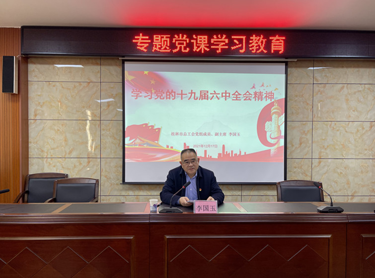 2021年12月17日下午,桂林市總工會黨組成員、副主席李國玉到我校組織黨員和干部職工開展專題黨課學(xué)習(xí)教育活動。