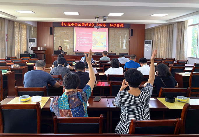 隨后,圍繞迎接黨的二十大、師德師風(fēng)和網(wǎng)絡(luò)安全等內(nèi)容,開(kāi)展了知識(shí)競(jìng)賽活動(dòng),以選擇題、問(wèn)答題等題型進(jìn)行搶答,大家興趣高漲,積極參與,增強(qiáng)了教師們對(duì)理論知識(shí)的了解和把握,激發(fā)了大家學(xué)習(xí)的自覺(jué)性和積極性。