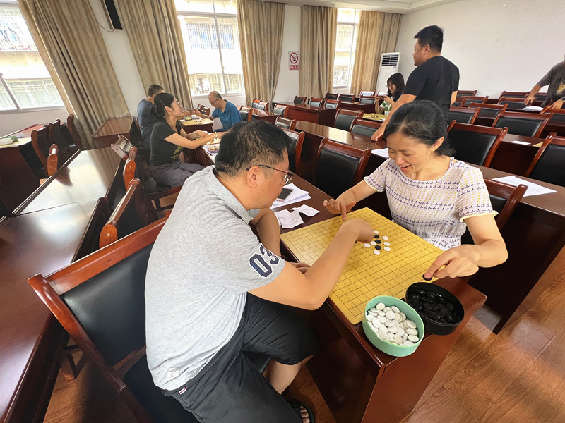 緊接著,一場(chǎng)場(chǎng)“智慧的五子棋比賽”開(kāi)始咯,錯(cuò)落有致的棋盤、黑白分明的棋子、凝神沉思的教師們,你來(lái)我往,招招逼人,黑白子之間不斷變換,有的注目沉思,有的落子果斷,有的喜形于色......比賽場(chǎng)面緊張、熱烈、有序、有趣。