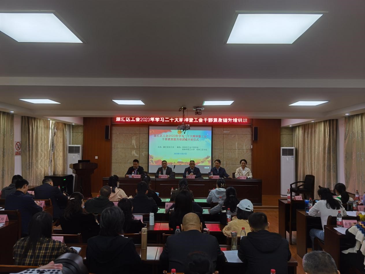 為深入學(xué)習(xí)貫徹黨的二十大精神,全面深入學(xué)習(xí)貫徹中國(guó)工會(huì)第十八次全國(guó)代表大會(huì)精神,促進(jìn)工會(huì)干部能力素質(zhì)提升,11月27日,源匯區(qū)總工會(huì)主辦、桂林市職工大學(xué)(桂林市工會(huì)干部學(xué)校、桂林工匠學(xué)院)承辦的源匯區(qū)工會(huì)2023年學(xué)習(xí)黨的二十大精神暨工會(huì)干部素質(zhì)提升培訓(xùn)班在桂林開班,來(lái)自全區(qū)各機(jī)關(guān)、部分事業(yè)單位和社區(qū)工會(huì)干部40余人參加了培訓(xùn)。桂林市總工會(huì)黨組成員、副主席李國(guó)玉致歡迎辭,源匯區(qū)委副書記許紹偉作開班動(dòng)員講話,桂林市職工大學(xué)(桂林市工會(huì)干部學(xué)校、桂林工匠學(xué)院)校長(zhǎng)蔣大為出席開班儀式,副校長(zhǎng)謝振凱主持會(huì)議。