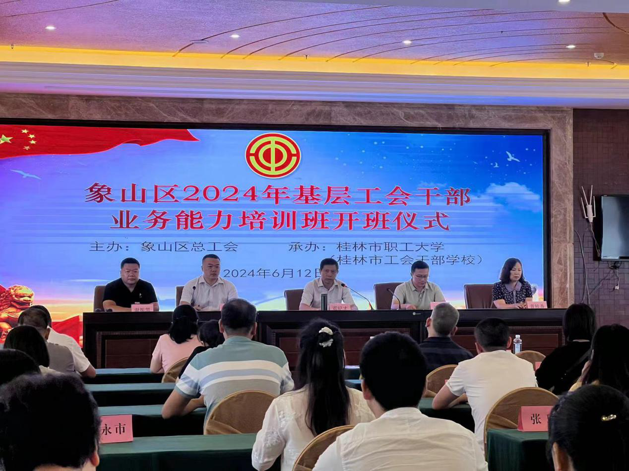 2024年6月12日,由象山區(qū)總工會(huì)主辦,桂林市職工大學(xué)(桂林市工會(huì)干部學(xué)校)承辦的象山區(qū)2024年工會(huì)業(yè)務(wù)能力培訓(xùn)班在龍勝縣華美大酒店順利開(kāi)班。本次培訓(xùn)班旨在提升工會(huì)干部的綜合素質(zhì)和業(yè)務(wù)能力,進(jìn)一步加強(qiáng)工會(huì)組織建設(shè),推動(dòng)工會(huì)工作再上新臺(tái)階。