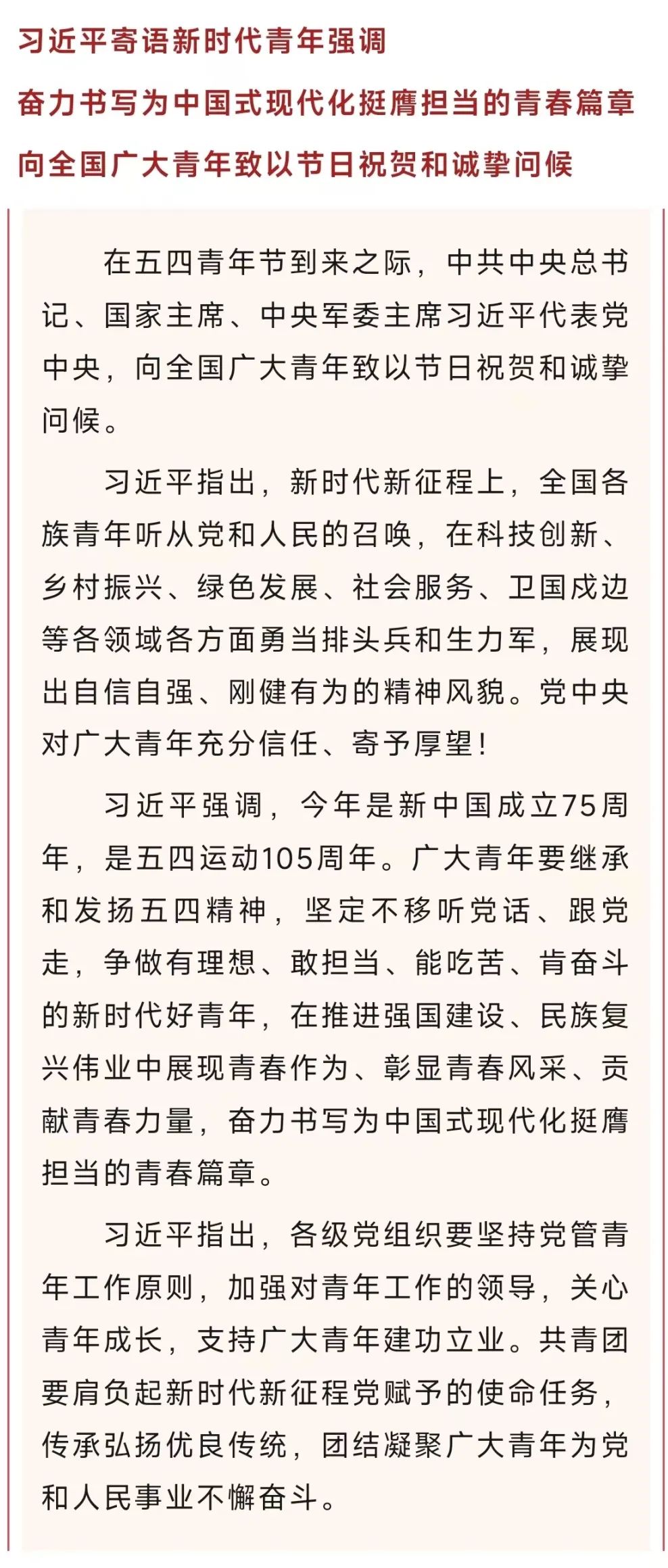 習近平向全國廣大青年致以節(jié)日祝賀和誠摯問候