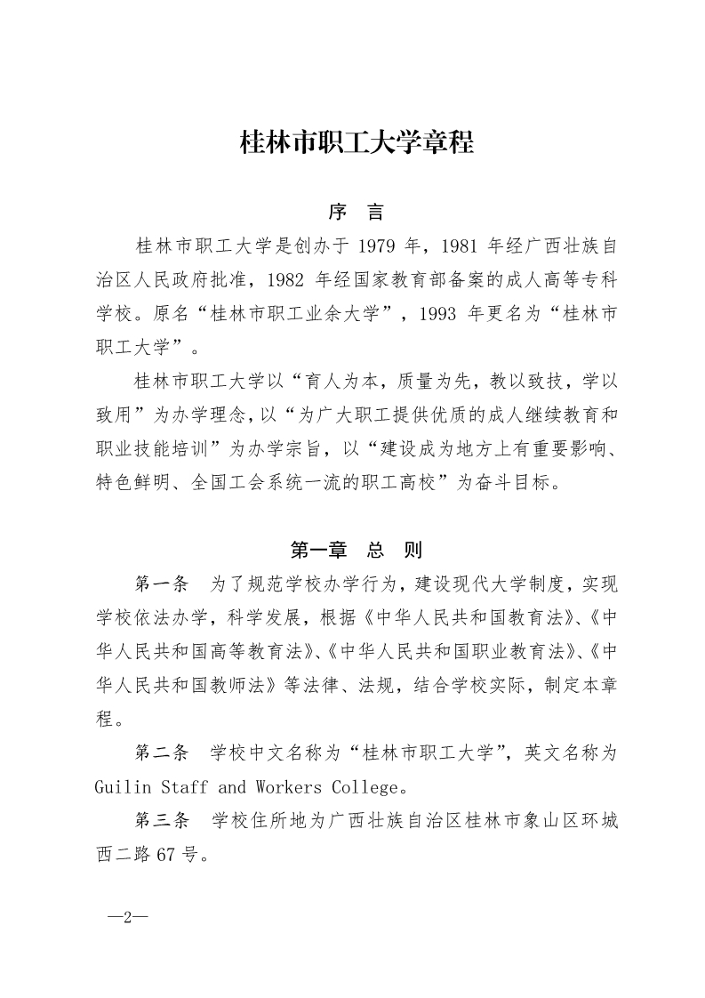 桂林市職工大學章程