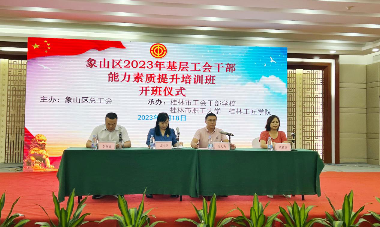 為引導(dǎo)基層工會(huì)干部不忘初心,牢記使命,全面強(qiáng)化和系統(tǒng)掌握業(yè)務(wù)知識(shí),切實(shí)增強(qiáng)履職能力,9月18日,由象山區(qū)總工會(huì)主辦,桂林市職工大學(xué)(桂林市工會(huì)干部學(xué)校、桂林工匠學(xué)院)承辦的象山區(qū)2023年基層工會(huì)干部能力素質(zhì)提升培訓(xùn)班在陽(yáng)朔順利召開(kāi)。象山區(qū)政協(xié)副主席、區(qū)總工會(huì)主席聶桂華出席開(kāi)班儀式并作動(dòng)員講話,桂林市職工大學(xué)(桂林市工會(huì)干部學(xué)校、桂林工匠學(xué)院)校長(zhǎng)蔣大為作開(kāi)班致辭。
