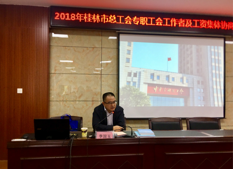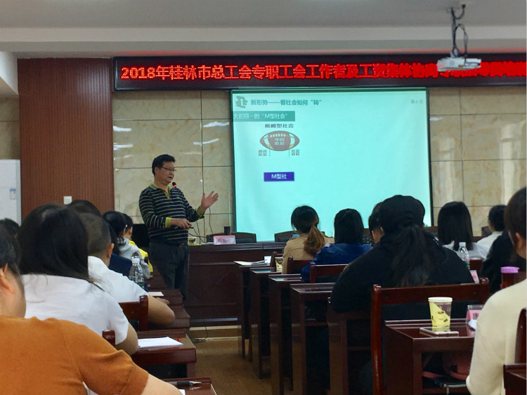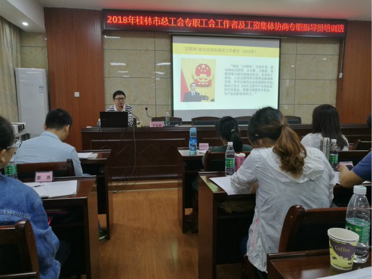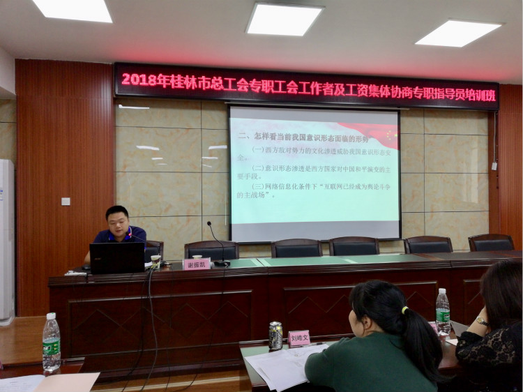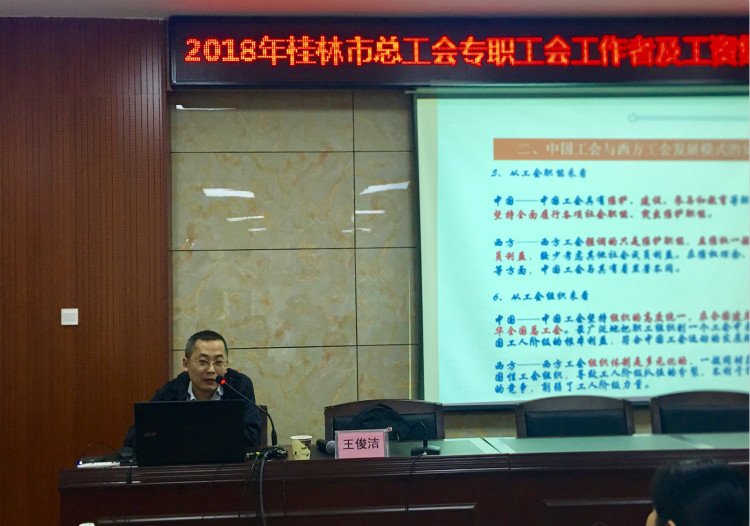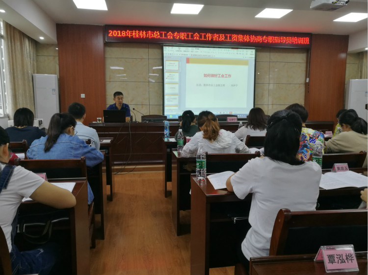 桂林市總工會基層組織工作部部長王俊潔在給學(xué)員授課
