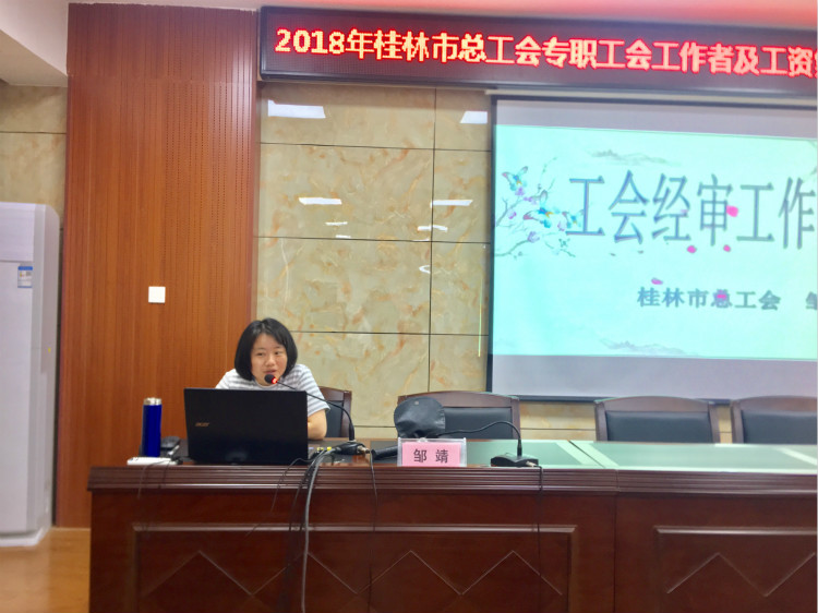 桂林市總工會黨組成員、經(jīng)審會主任鄒靖在給學(xué)員授課