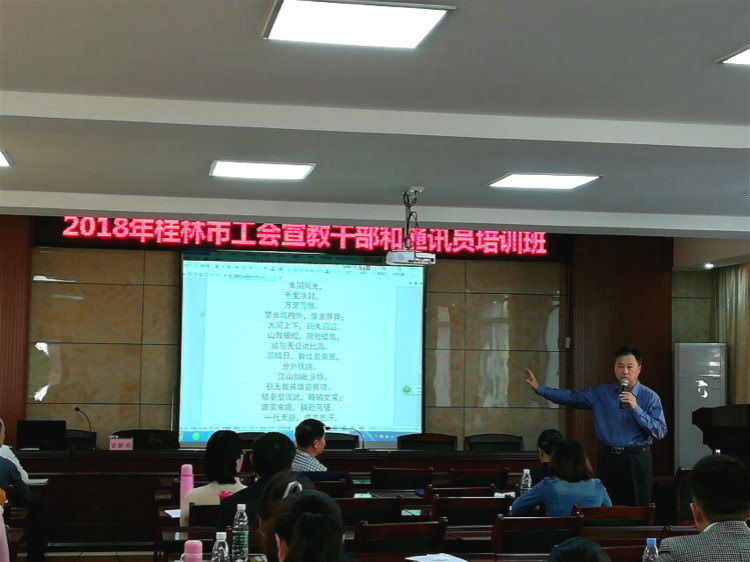 為了更好的學(xué)習(xí)宣傳貫徹習(xí)近平總書記重要講話和中國工會十七大精神,進一步加強工會宣教干部和通訊員隊伍建設(shè),提升工會宣教干部和通訊員的業(yè)務(wù)能力和理論水平,2018年11月29日至30日,桂林市工會宣教干部和通訊員培訓(xùn)班在我校舉辦。