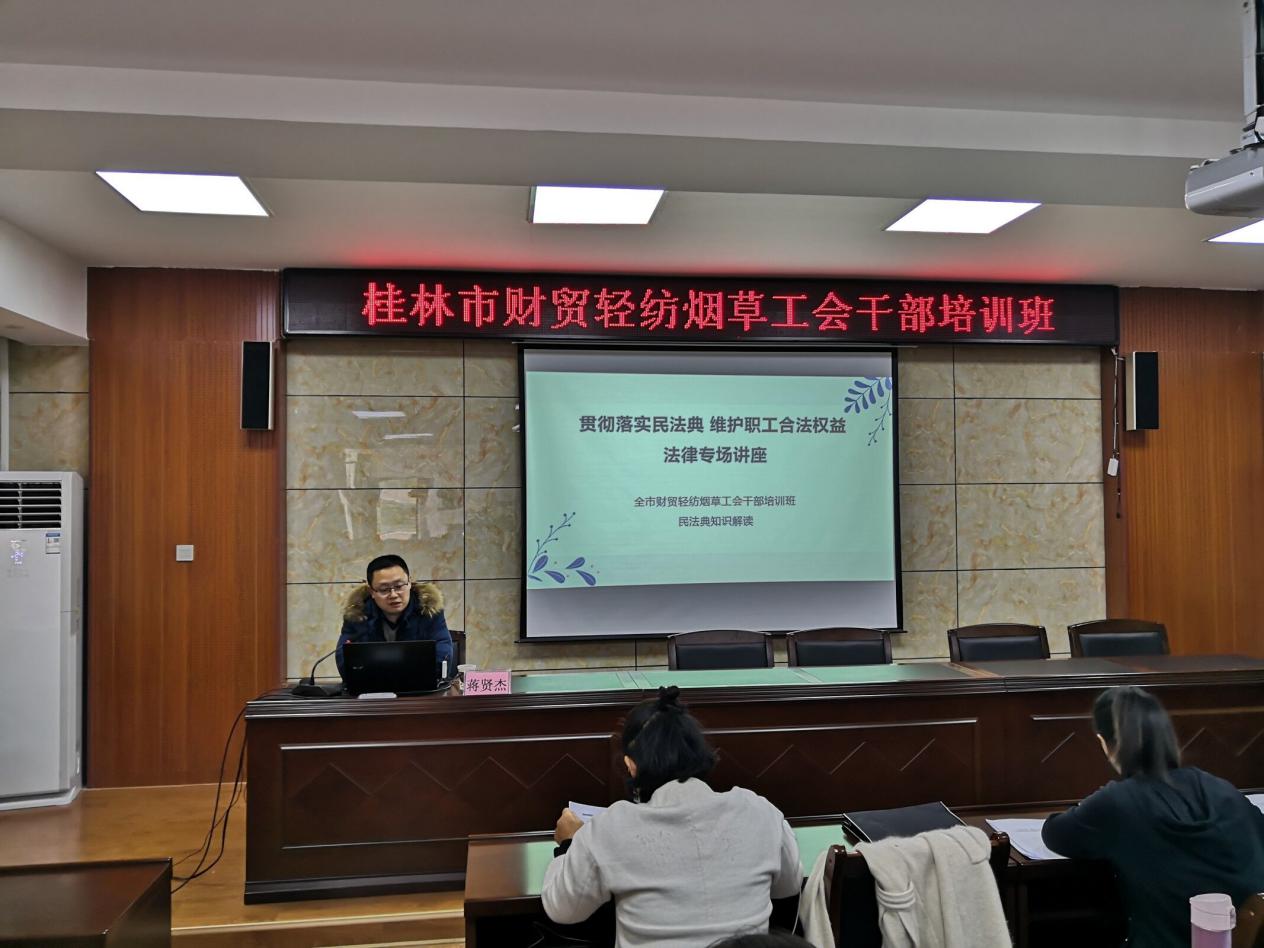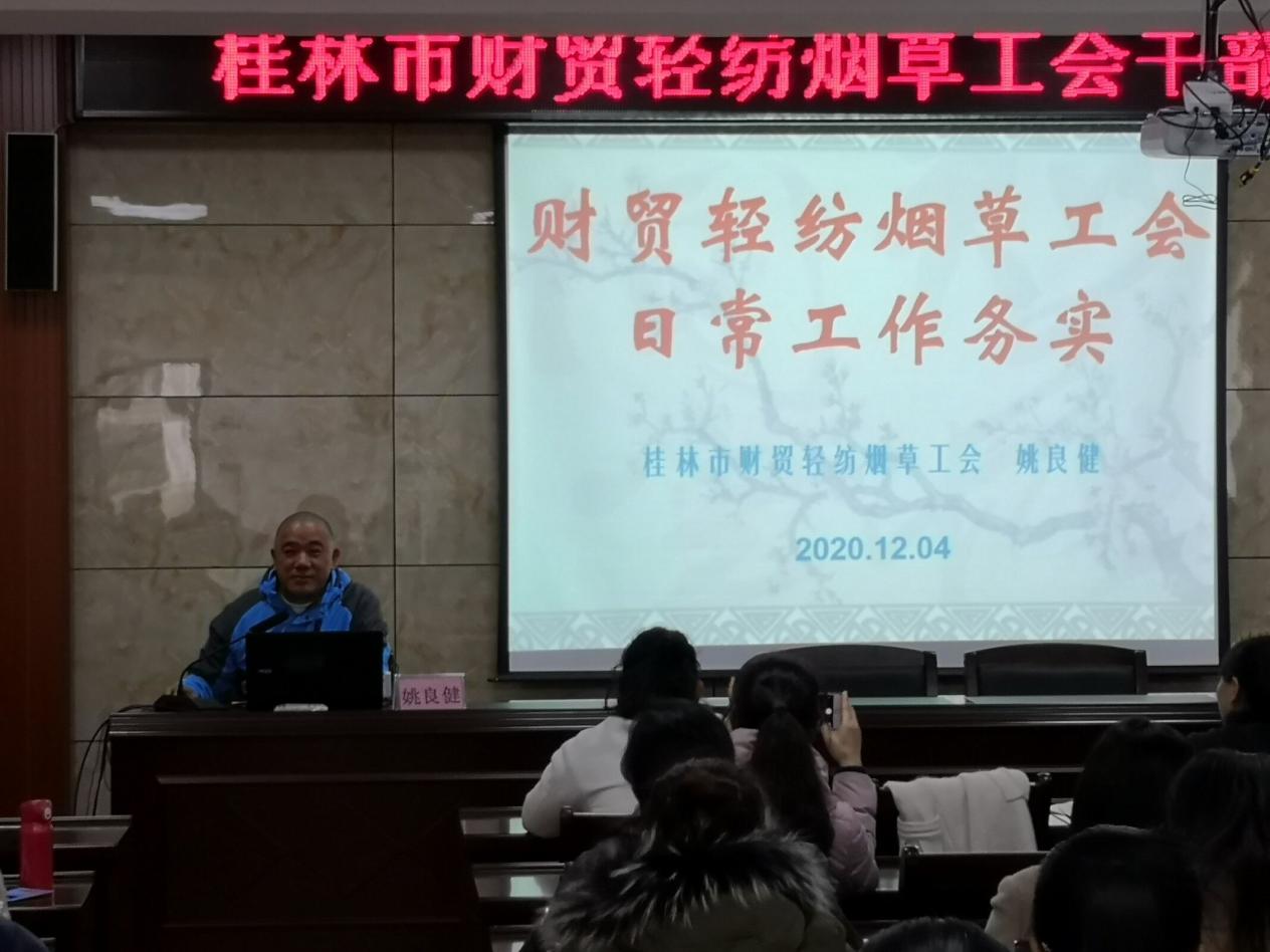 12月4日,由桂林市總工會(huì)財(cái)貿(mào)輕紡煙草工會(huì)主辦,桂林市工會(huì)干部學(xué)校(桂林市職工大學(xué))承辦的桂林市財(cái)貿(mào)輕紡煙草工會(huì)干部培訓(xùn)班在我校召開。