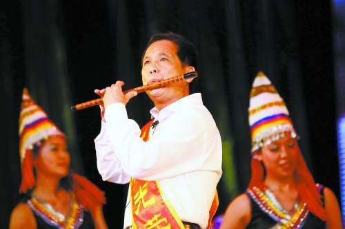 王遠文主席在進行笛子演奏