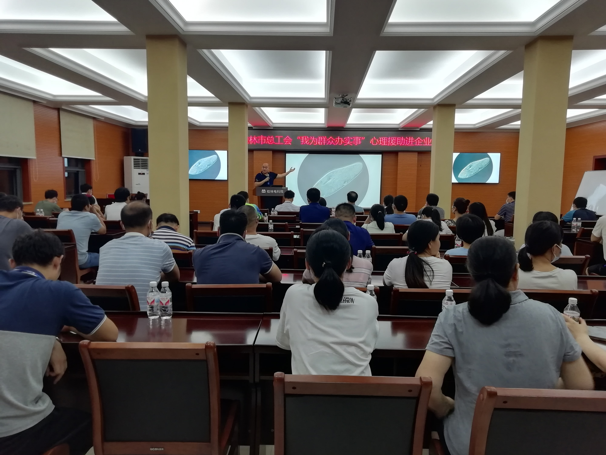 桂林市總工會(huì)送職工心理援助進(jìn)桂林市激光研究院,該企業(yè)90余位干部職工參加