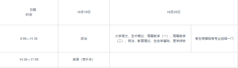 二、專科起點升本科考試時間表
