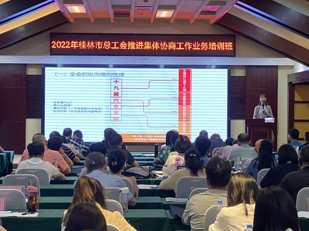 此次培訓(xùn)邀請(qǐng)到了桂林市委黨校統(tǒng)戰(zhàn)理論教研室主任盧雪艷副教授,桂林電子科技大學(xué)蔣滿霖教授、胡建新副教授,自治區(qū)總工會(huì)干部學(xué)校教研室主任任偉宇老師等資深專家學(xué)者進(jìn)行了精彩授課。課程內(nèi)容包括:黨的十九屆六中全會(huì)精神》、新經(jīng)濟(jì)形勢(shì)下提升工會(huì)干部管理能力的探討、《工會(huì)法》與《勞動(dòng)合同法》解讀、企業(yè)集體協(xié)商策略和技巧等。培訓(xùn)班還組織學(xué)員到位于福利鎮(zhèn)古座塘村的臨陽聯(lián)隊(duì)紅色旅游基地進(jìn)行現(xiàn)場(chǎng)觀摩學(xué)習(xí),重溫紅色記憶,傳承紅色精神。最后在結(jié)業(yè)儀式上,四個(gè)學(xué)習(xí)小組分別派代表就本次培訓(xùn)的感想和收獲進(jìn)行了交流。