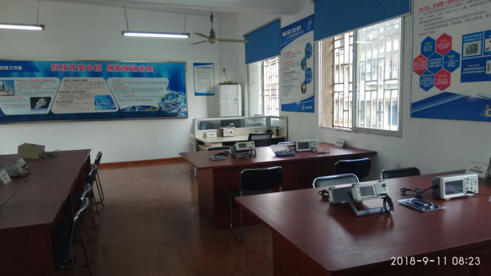 單片機(jī)和嵌入式系統(tǒng)開(kāi)發(fā)實(shí)驗(yàn)室面積70平米,內(nèi)部設(shè)施齊全。配置多種UNI-T系列數(shù)字存儲(chǔ)示波器、數(shù)字信號(hào)發(fā)生器、精密電源和各類數(shù)字萬(wàn)用表等實(shí)驗(yàn)儀器,多種型號(hào)單片機(jī)仿真開(kāi)發(fā)系統(tǒng)、編程調(diào)試系統(tǒng)及演示實(shí)驗(yàn)系統(tǒng),備有多種不同類型單片機(jī)IC(芯片)和電子電路開(kāi)發(fā)實(shí)驗(yàn)用元、器件,配備多種裝配、調(diào)試工具和耗材,實(shí)驗(yàn)室可供25人同時(shí)實(shí)驗(yàn)操作。