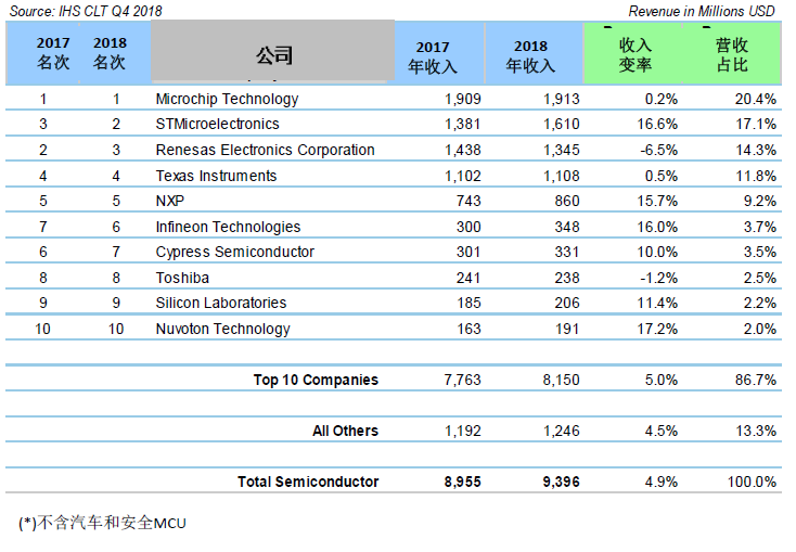 2018年通用MCU廠商排名